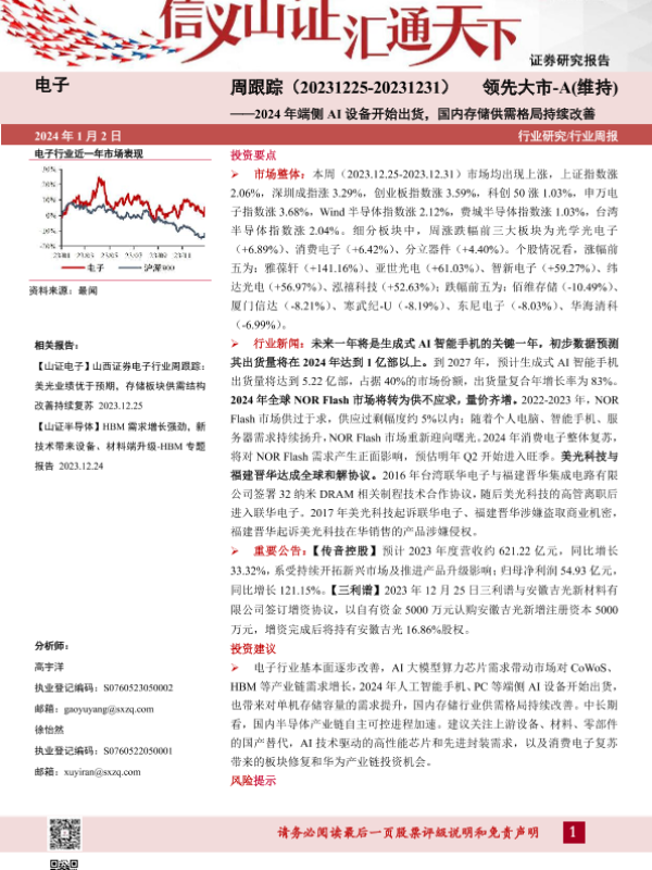 【山西证券】【20240102】2024年端侧AI设备开始出货,国内存储供需格局持续改善-28页 行业研究