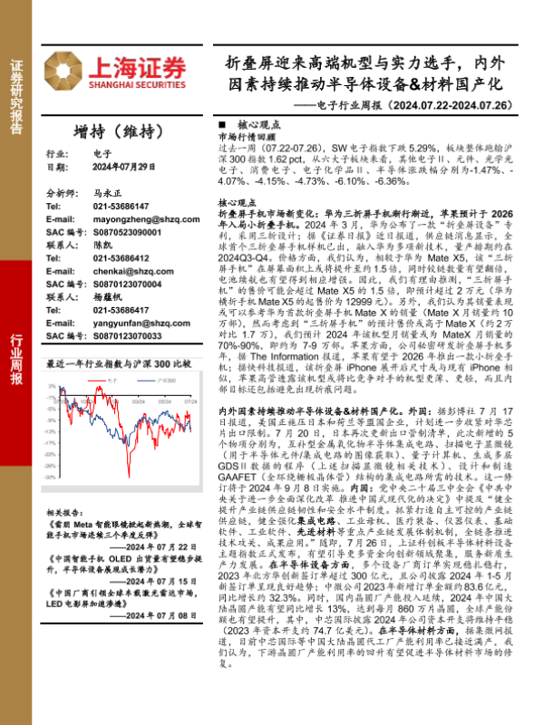 【上海证券】【20240729】电子行业周报:折叠屏迎来高端机型与实力选手,内外因素持续推动半导体设备&材料国产化-10页 行业研究