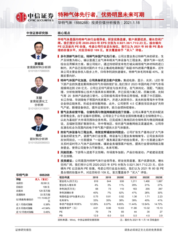 【中信证券】【20210118】20210118-中信证券-华特气体-688268.SH-投资价值分析报告:特种气体先行者,优势明显未来可期-29页 行业研究