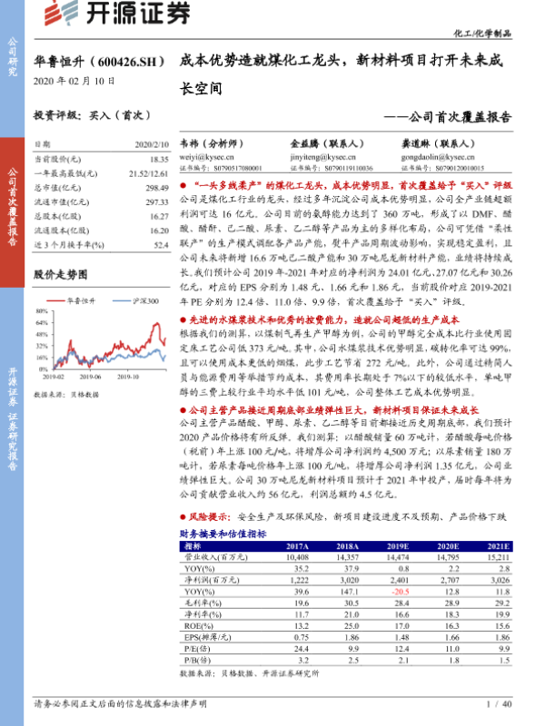 【开源证券】【20200210】20200210-开源证券-华鲁恒升-600426.SH-公司首次覆盖报告:成本优势造就煤化工龙头,新材料项目打开未来成长空间-40页 行业研究