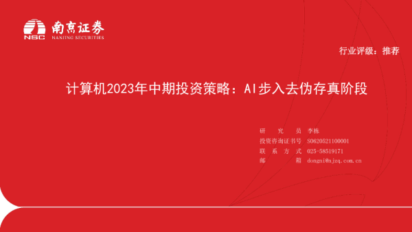 【南京证券】【20230714】计算机2023年中期投资策略:AI步入去伪存真阶段-20页 行业研究