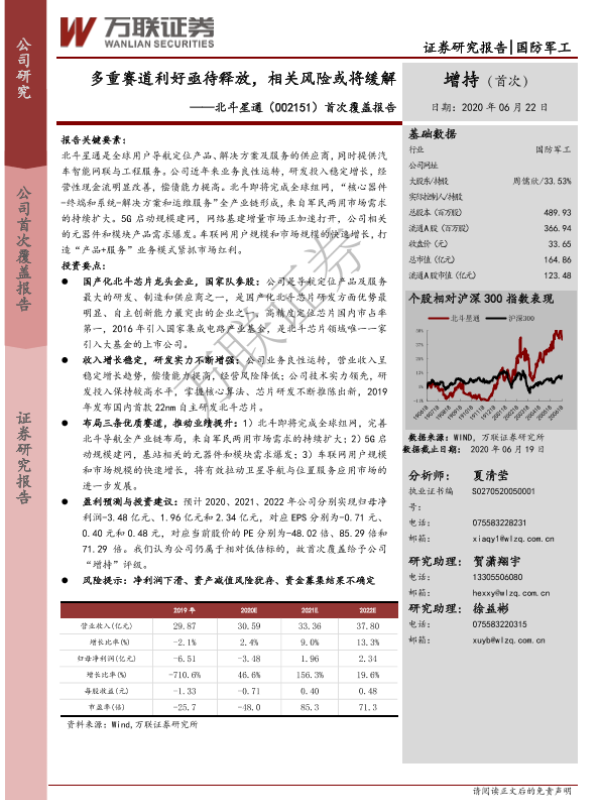 【万联证券】【20200622】20200622-万联证券-北斗星通-002151.SZ-首次覆盖报告:多重赛道利好亟待释放,相关风险或将缓解-24页 行业研究