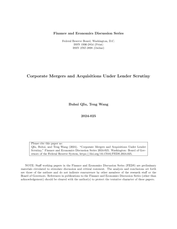 【Board of Governors of the Federal Reserve System】【202402】Corporate Mergers and Acquisitions Under Lender Scrutiny-56页 行业研究