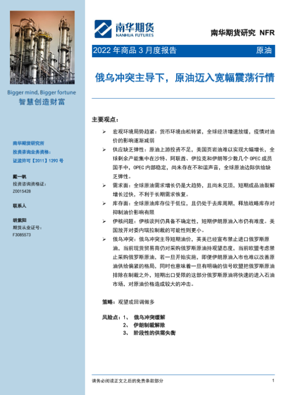 【南华期货】【20220314】2022年商品3月度报告-原油:俄乌冲突主导下,原油迈入宽幅震荡行情-16页 行业研究