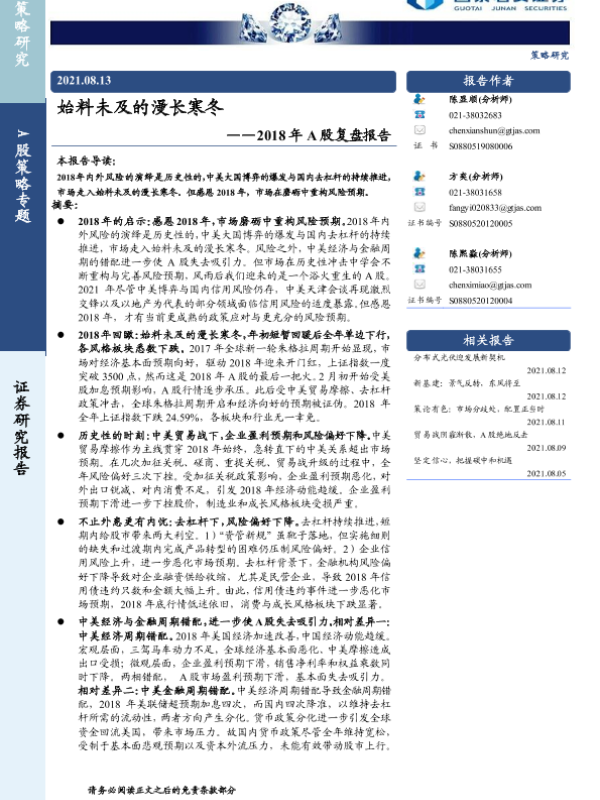【国泰君安证券】【20210813】始料未及的漫长寒冬——2018年A股复盘报告-22页 行业研究