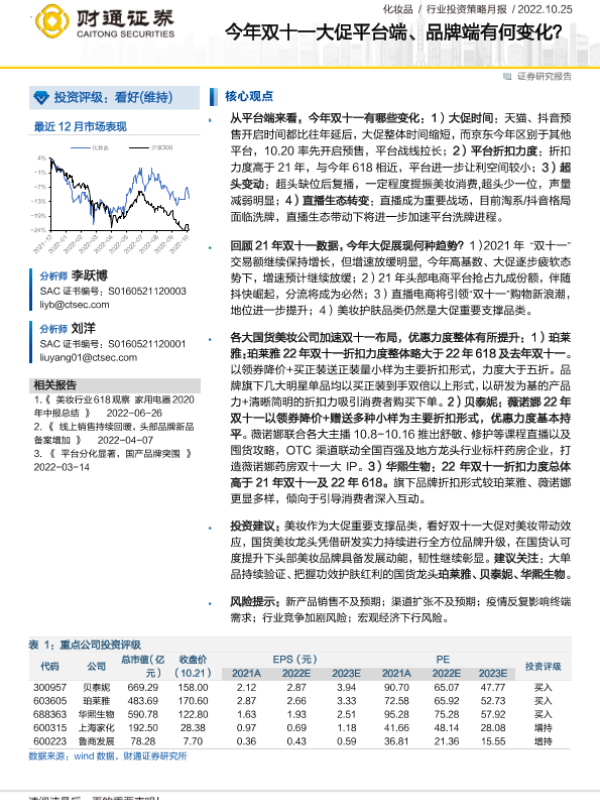 【财通证券】【20221025】化妆品行业:今年双十一大促平台端、品牌端有何变化?-26页 行业研究