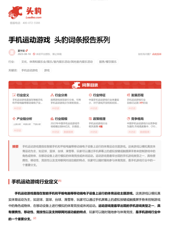 【头豹研究院】【20230818】手机运动游戏 头豹词条报告系列-19页 行业研究