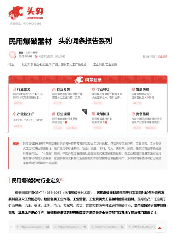【头豹研究院】【20230809】民用爆破器材 头豹词条报告系列-20页 行业研究