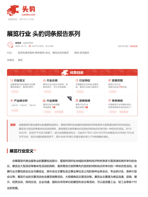 【头豹研究院】【20231012】展览行业 头豹词条报告系列-22页 行业研究