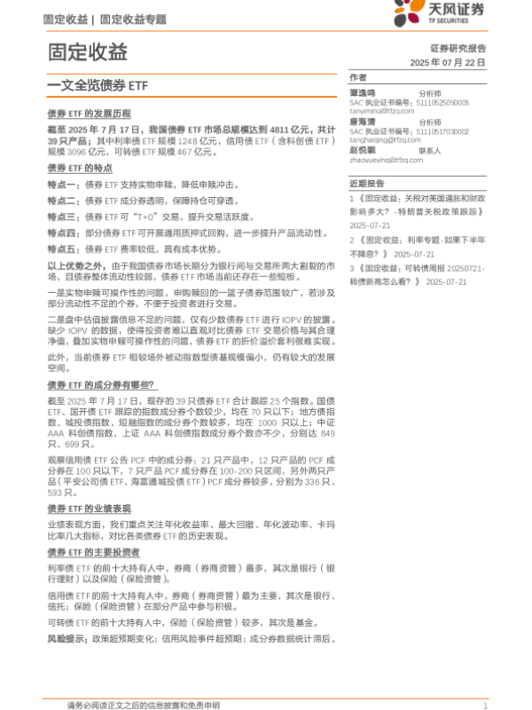 【天风证券】【20250722】固定收益:一文全览债券ETF-25页 证券期货研究报告
