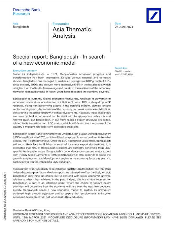 【Deutsche Bank Research】【20240626】Special report Bangladesh- In search of a new economic model-24页 行业研究