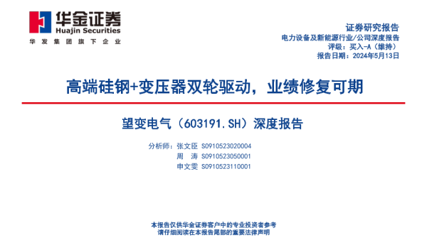 【华金证券】【20240513】望变电气(603191)深度报告:高端硅钢+变压器双轮驱动,业绩修复可期-60页 行业研究