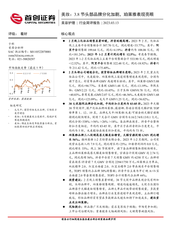 【首创证券】【20230313】美妆:3.8节头部品牌分化加剧,珀莱雅表现亮眼-16页 行业研究
