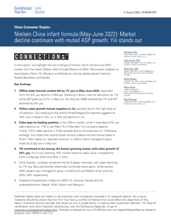 【Goldman Sachs】【20220811】Market decline continues with muted ASP growth; Yili stands out-16页 行业研究