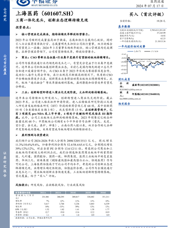 【华福证券】【20240717】上海医药:工商一体化龙头,创新业态逻辑持续兑现-21页 公司研究