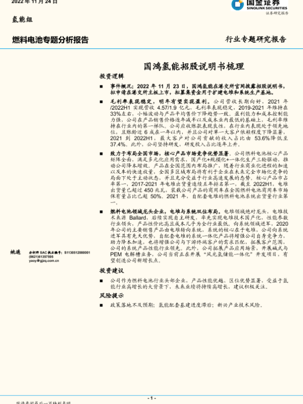 【国金证券】【20221124】20221124-国金证券-燃料电池专题分析报告:国鸿氢能招股说明书梳理-20页 行业研究