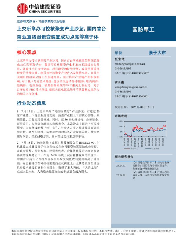 【中信建投证券】【20250721】上交所举办可控核聚变产业沙龙,国内首台商业直线型聚变装置成功点亮等离子体-11页 证券期货研究报告