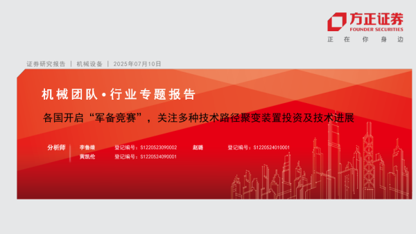 【方正证券】【20250710】机械设备行业专题报告:各国开启“军备竞赛”,关注多种技术路径聚变装置投资及技术进展-17页 证券期货研究报告