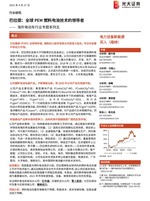 【光大证券】【20210427】巴拉德:全球PEM燃料电池技术的领导者-29页 行业研究