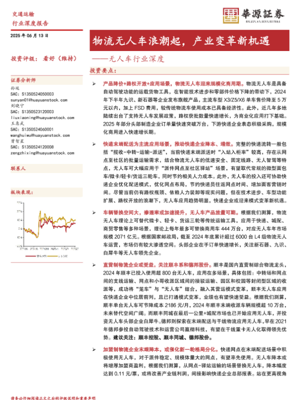【华源证券】【20250613】物流无人车浪潮起,产业变革新机遇-33页 证券期货研究报告
