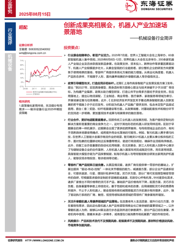 【东海证券】【20250815】创新成果亮相展会,机器人产业加速场景落地-6页 行业研究