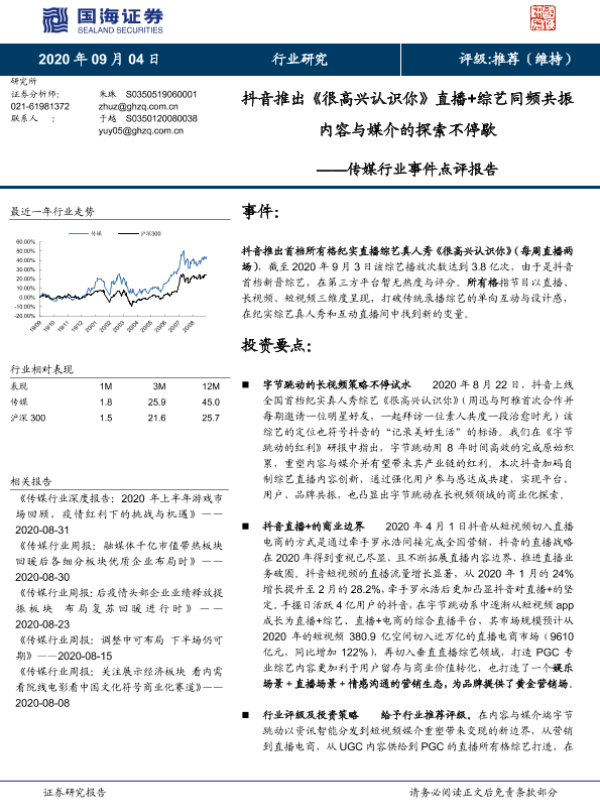 【国海证券】【20200904】抖音推出《很高兴认识你》直播+综艺同频共振内容与媒介的探索不停歇-4页 行业研究