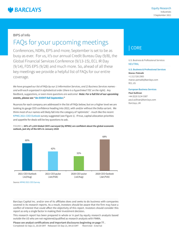 【巴克莱资本有限公司】【20210903】巴克莱-美股投资策略-商业及专业服务:即将召开的会议的常见问题解答-82页 行业研究