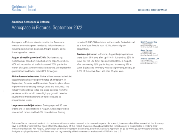 【Goldman Sachs】【20220930】Americas Aerospace & Defense Aerospace in Pictures - September 2022-16页 行业研究