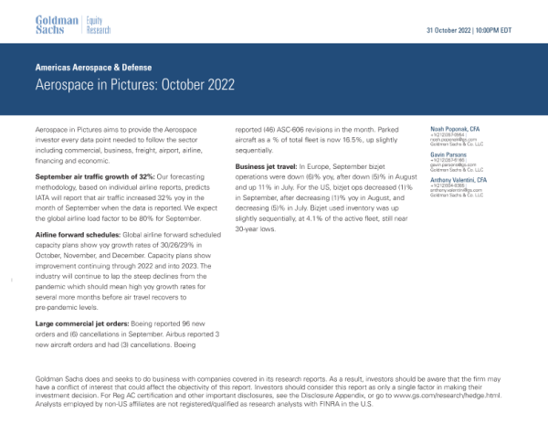 【Goldman Sachs】【20221031】Americas Aerospace & Defense Aerospace in Pictures - October 2022-16页 行业研究