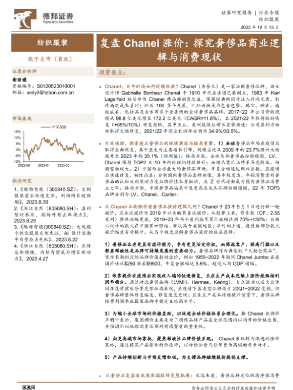 【德邦证券】【20231013】纺织服装行业复盘Chanel涨价:探究奢侈品商业逻辑与消费现状-28页 行业研究