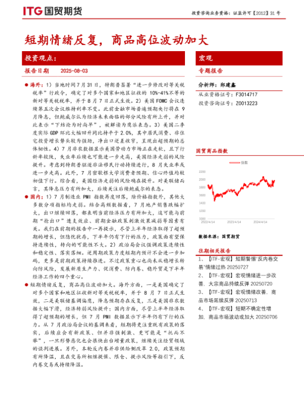【国贸期货】【20250803】短期情绪反复,商品高位波动加大-10页 宏观策略