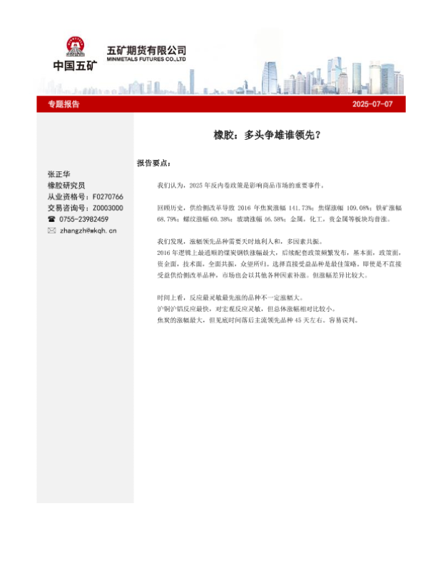 【五矿期货】【20250707】橡胶:多头争雄谁领先?-10页 证券期货研究报告