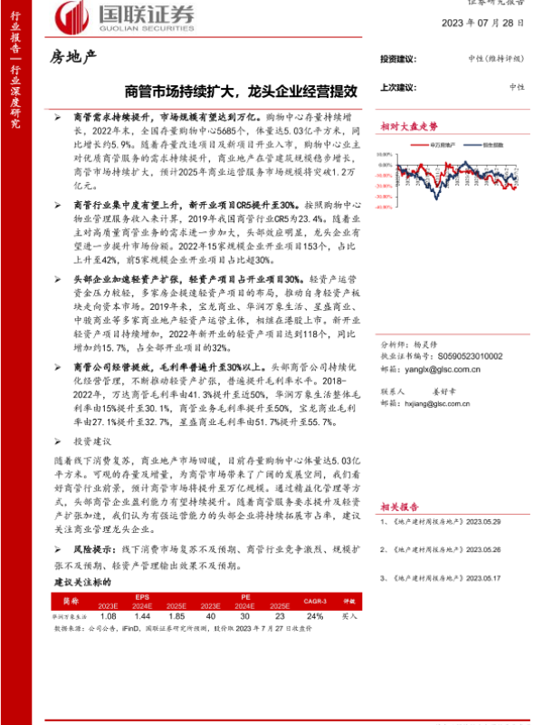 【国联证券】【20230728】2023-07-29-房地产行业深度研究-商管市场持续扩大-龙头企业经营提效-25页 行业研究