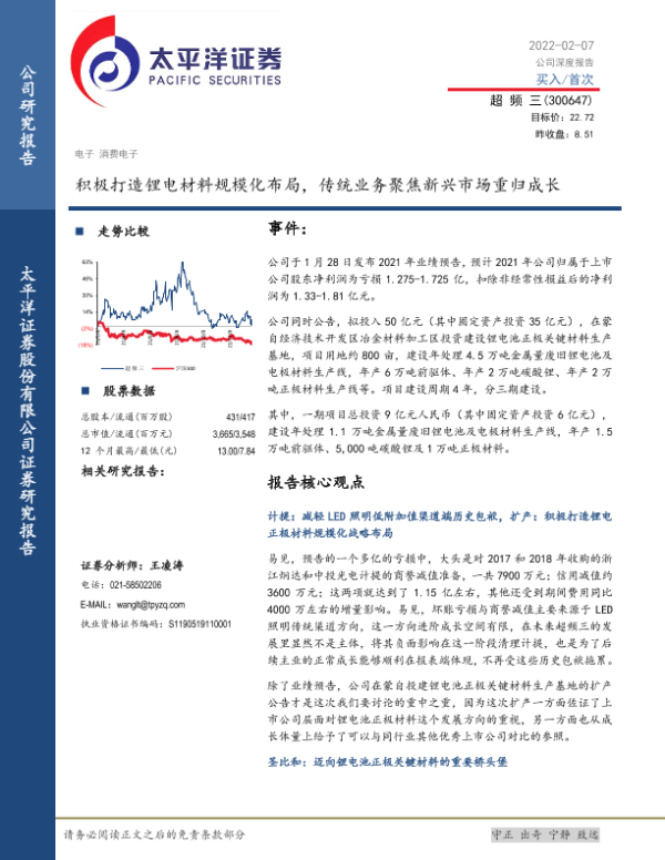 【太平洋证券】【20220207】深度报告-20220207-太平洋-超频三-300647.SZ-积极打造锂电材料规模化布局_传统业务聚焦新兴市场重归成长-39页 行业研究
