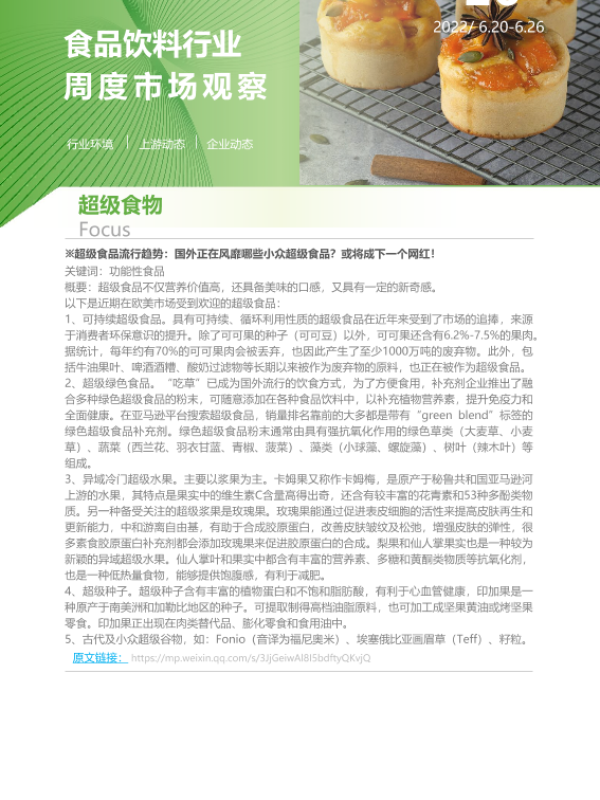 【艾瑞咨询】【20220626】2022年第26周:食品饮料行业周度市场观察-9页 行业研究