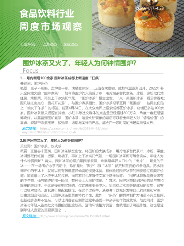 【艾瑞咨询】【20230421】2023年第17周:食品饮料行业周度市场观察-7页 行业研究