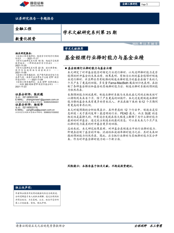 【国信证券】【20211130】学术文献研究系列第25期:基金经理行业择时能力与基金业绩-17页 行业研究