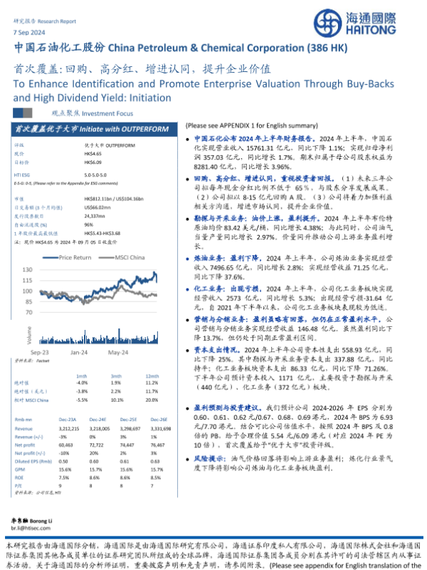 【海通国际】【20240907】中国石油化工股份(0386.HK)首次覆盖:回购、高分红、增进认同,提升企业价值-15页 行业研究