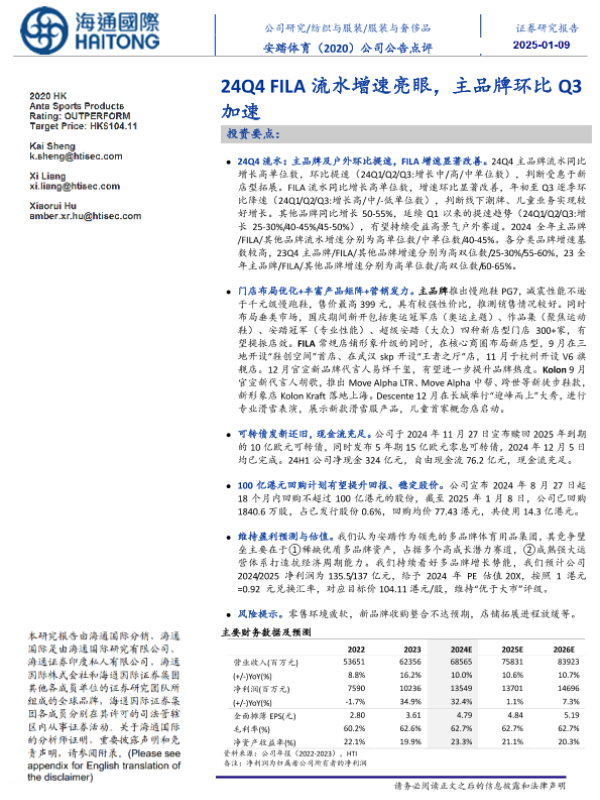 【海通国际】【20250109】安踏体育(02020.HK)24Q4FILA流水增速亮眼,主品牌环比Q3加速-12页 行业研究