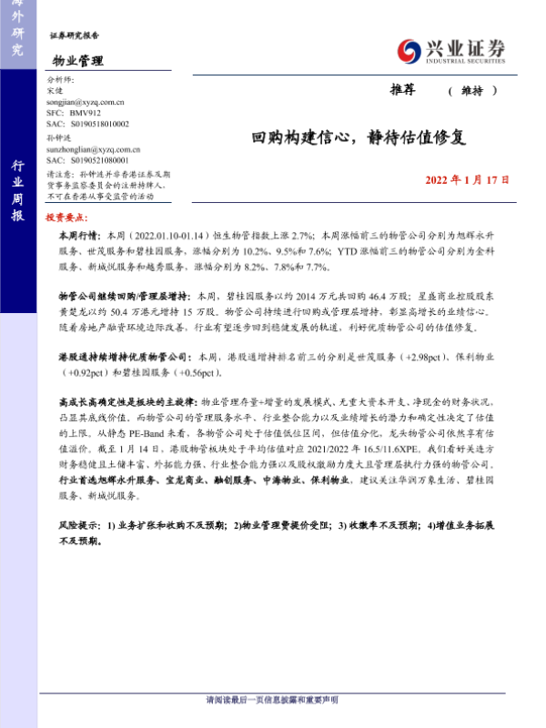 【兴业证券】【20220117】物业管理行业周报:回购构建信心,静待估值修复-7页 行业研究