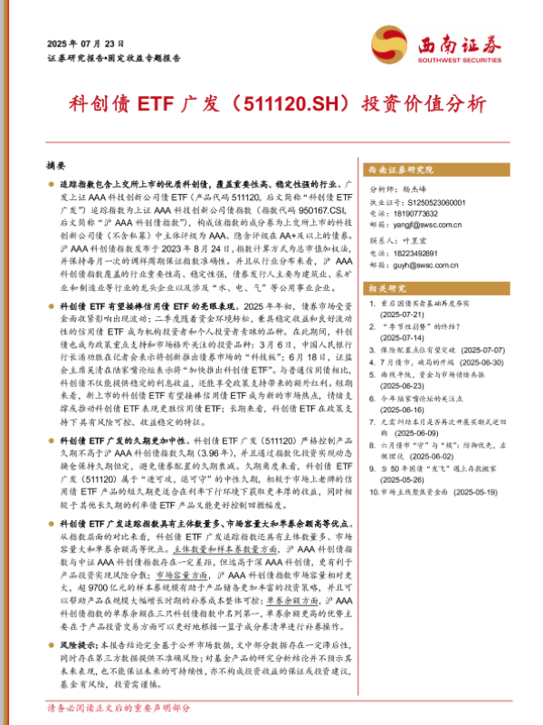 【西南证券】【20250723】科创债ETF广发(511120.SH)投资价值分析-11页 证券期货研究报告