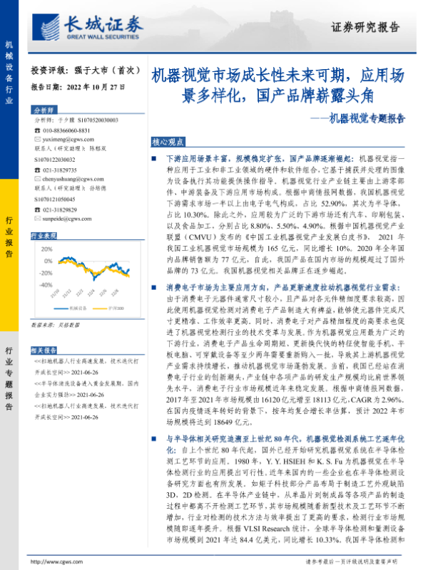【长城证券】【20221027】机器视觉专题报告:机器视觉市场成长性未来可期,应用场景多样化,国产品牌崭露头角-28页 行业研究