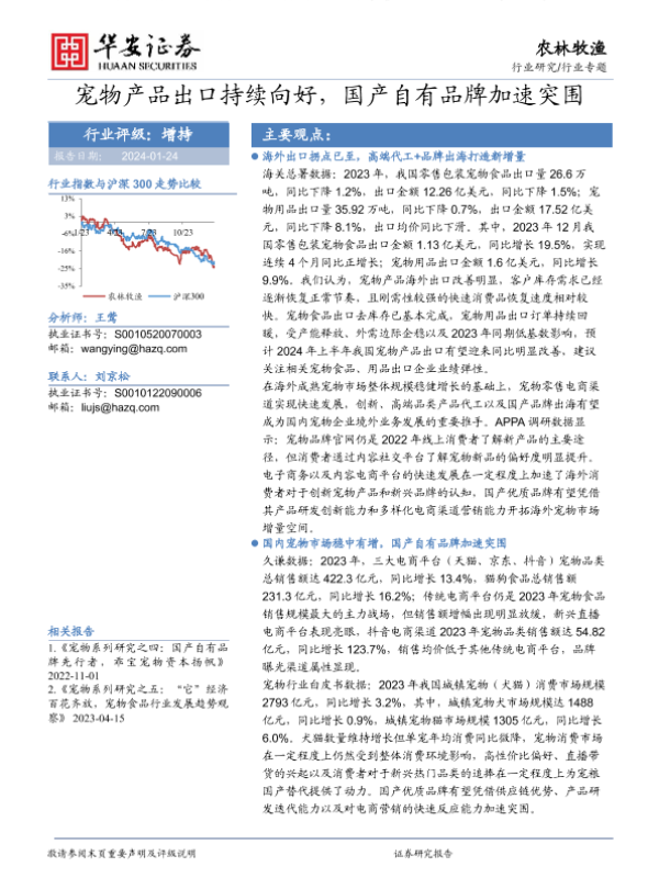 【华安证券】【20240124】宠物产品出口持续向好,国产自有品牌加速突围-20页 行业研究