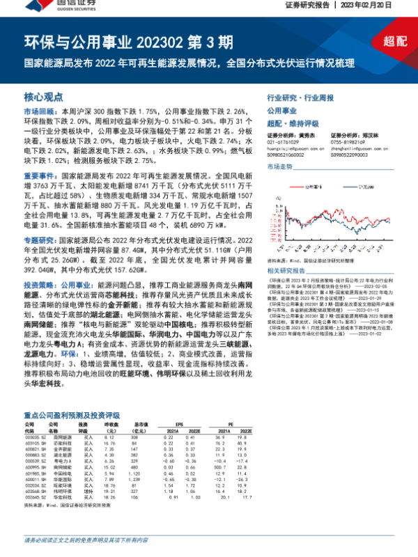 【国信证券】【20230220】环保与公用事业202302第3期:国家能源局发布2022年可再生能源发展情况,全国分布式光伏运行情况梳理-28页 行业研究