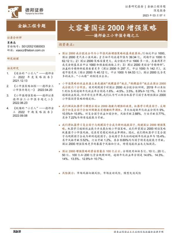 【德邦证券】【20230307】德邦金工小市值专题之三:大容量国证2000增强策略-22页 行业研究