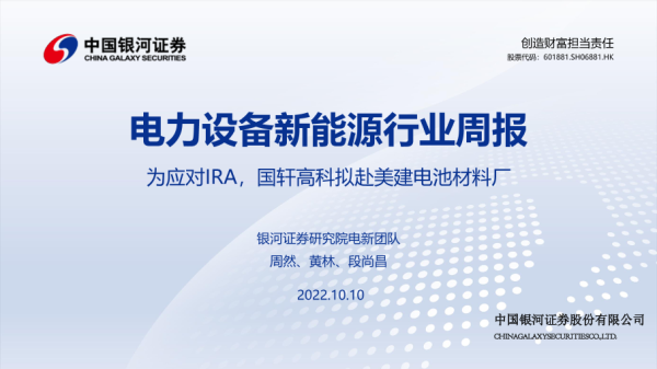 【银河证券】【20221010】电力设备新能源行业周报:为应对IRA,国轩高科拟赴美建电池材料厂-49页 行业研究