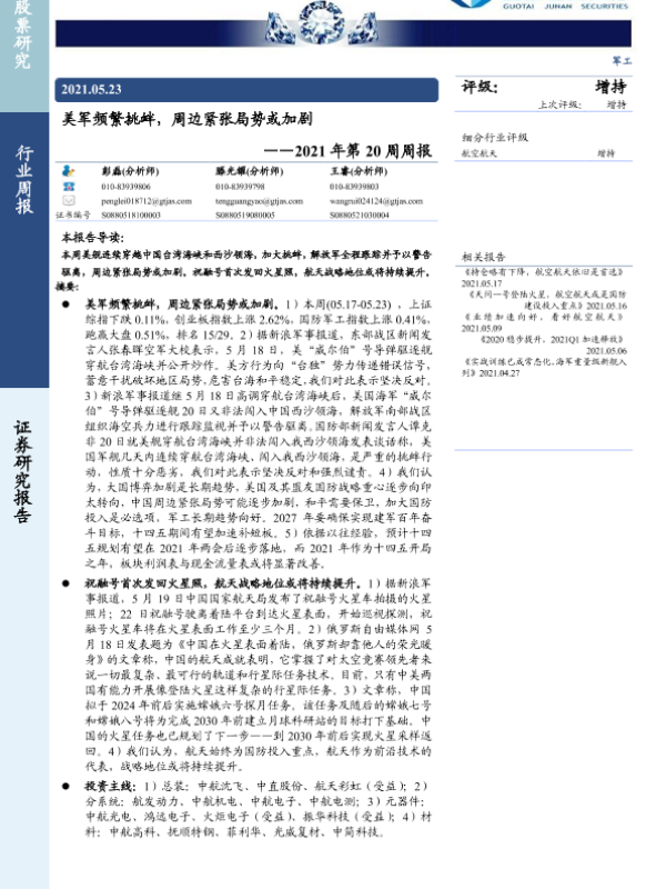 【国泰君安证券】【20210523】美军频繁挑衅,周边紧张局势或加剧-10页 行业研究