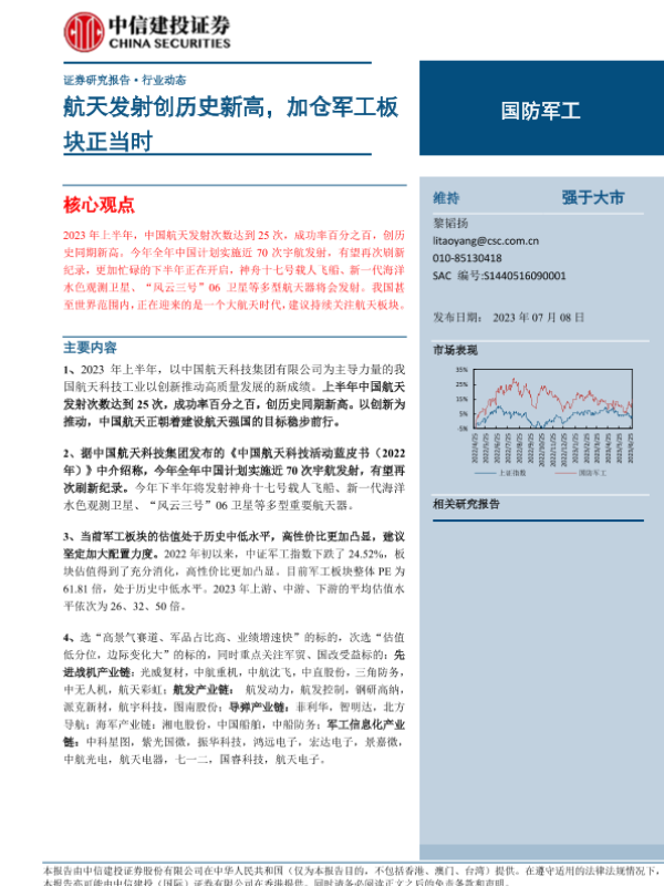 【中信建投证券】【20230708】国防军工行业:航天发射创历史新高,加仓军工板块正当时-24页 行业研究