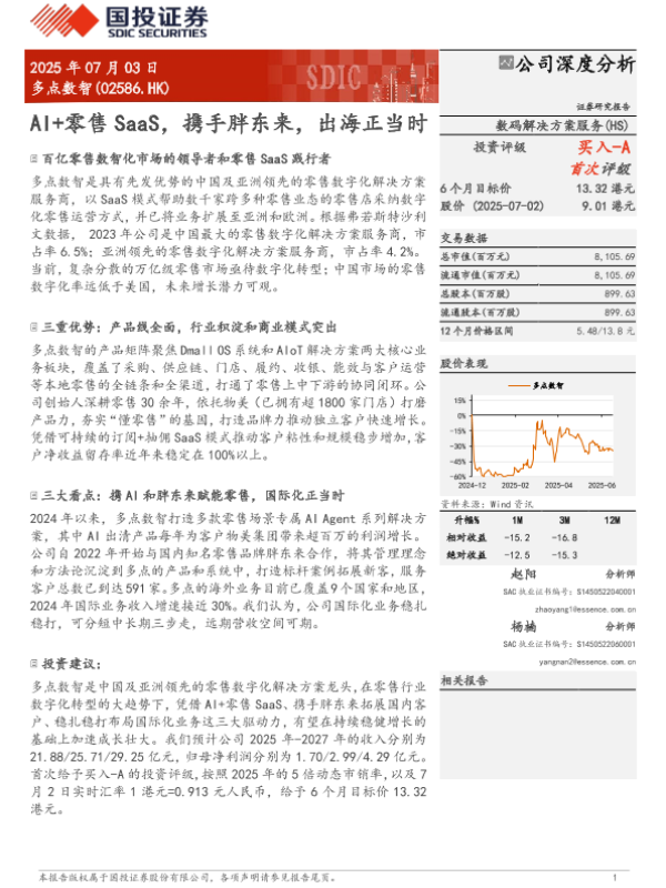 【国投证券】【20250703】多点数智AI+零售SaaS,携手胖东来,出海正当时-40页 证券期货研究报告