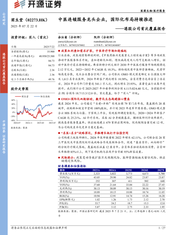 【开源证券】【20250722】固生堂(02273.HK)港股公司首次覆盖报告-27页 证券期货研究报告